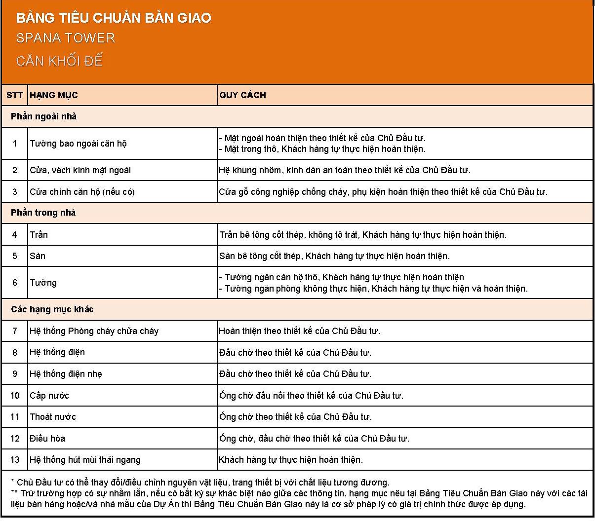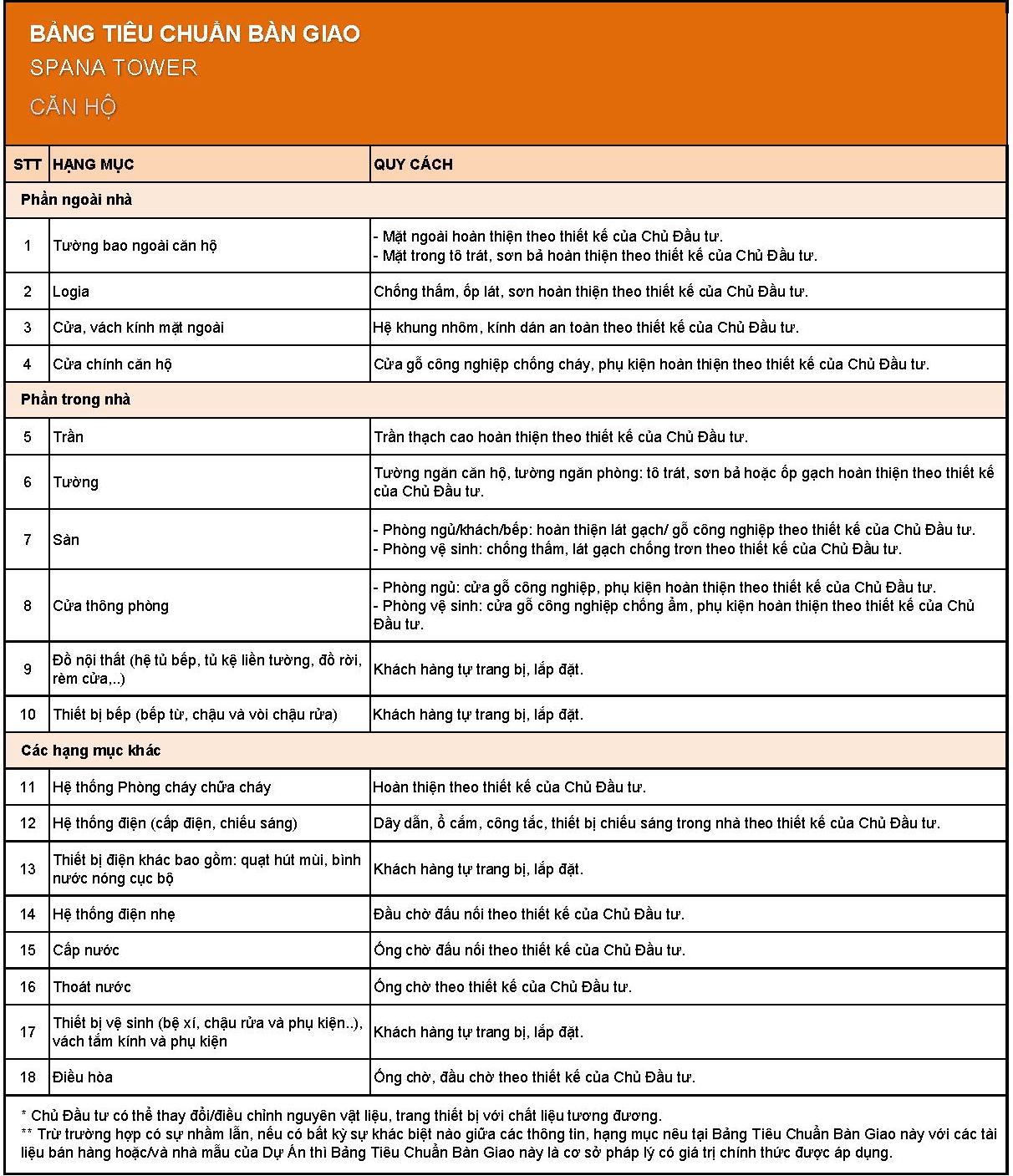 Tiêu chuẩn bàn giao căn hộ Spana Hoà Xuân