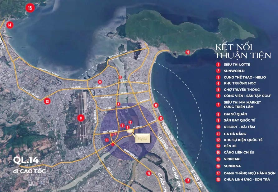 Tọa lạc bên dòng sông Hàn, sát chân cầu Tiên Sơn, cây cầu huyết mạch của trung tâm TP Đà Nẵng nối liền hai quận Hải Châu và bán đảo Sơn Trà, The Meridian sở hữu hệ thống kết nối vùng vô cùng thuận tiện.