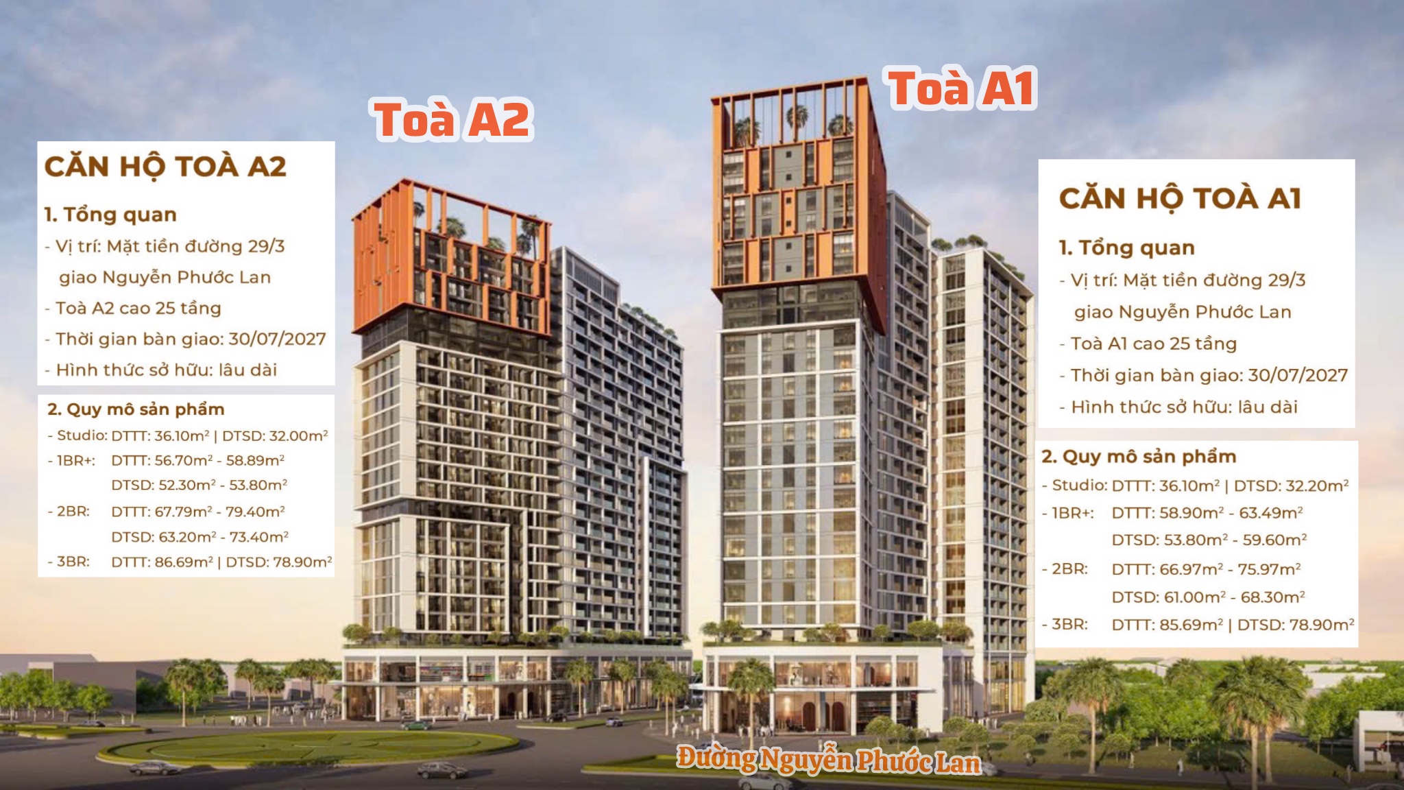 Bao gồm 02 tòa tháp cao 25 tầng A1 & A2,